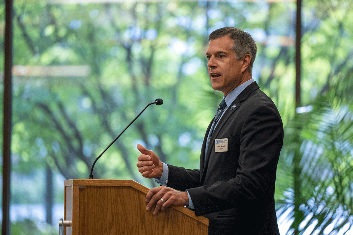 Dr. Mike Godard was selected by the Indiana State University Board of Trustees in April 2024 to serve as the thirteenth president of Indiana State University. He brings more than 25 years of transformative leadership in higher education to Indiana State. From his faculty positions to his service in top administrative roles, including most recently as Provost at Southeast Missouri State University, Dr. Godard has created impactful change for students and institutions. His career distinguishes itself by a commitment to academic excellence, strategic innovation, and student success.